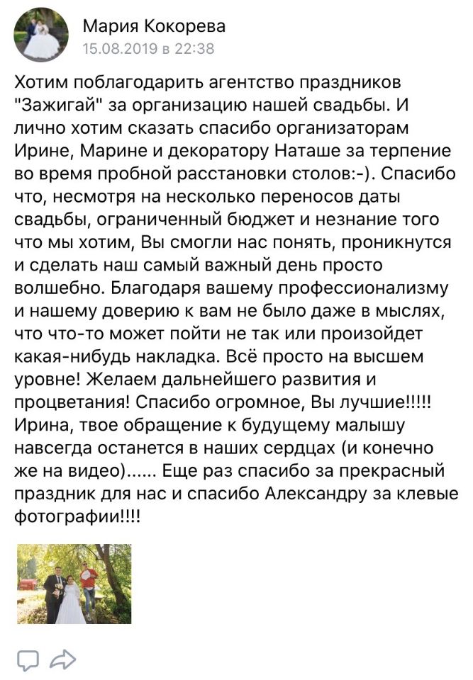 Руководитель свадебного направления «Zажигай», участник ежегодного московского Event бизнес-форума, организатор городского фестиваля «Горько»